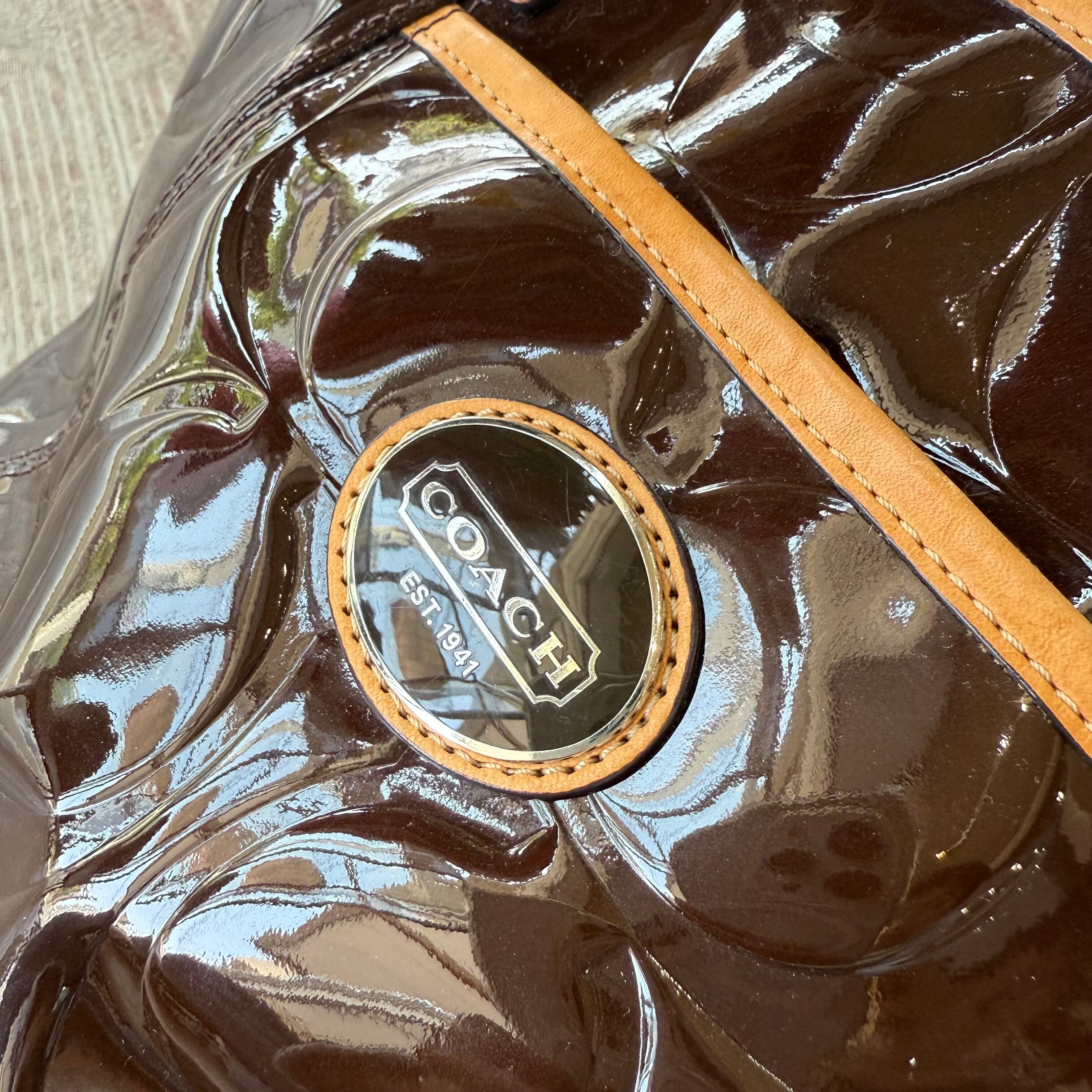 COACH brown enamel leather tote bag