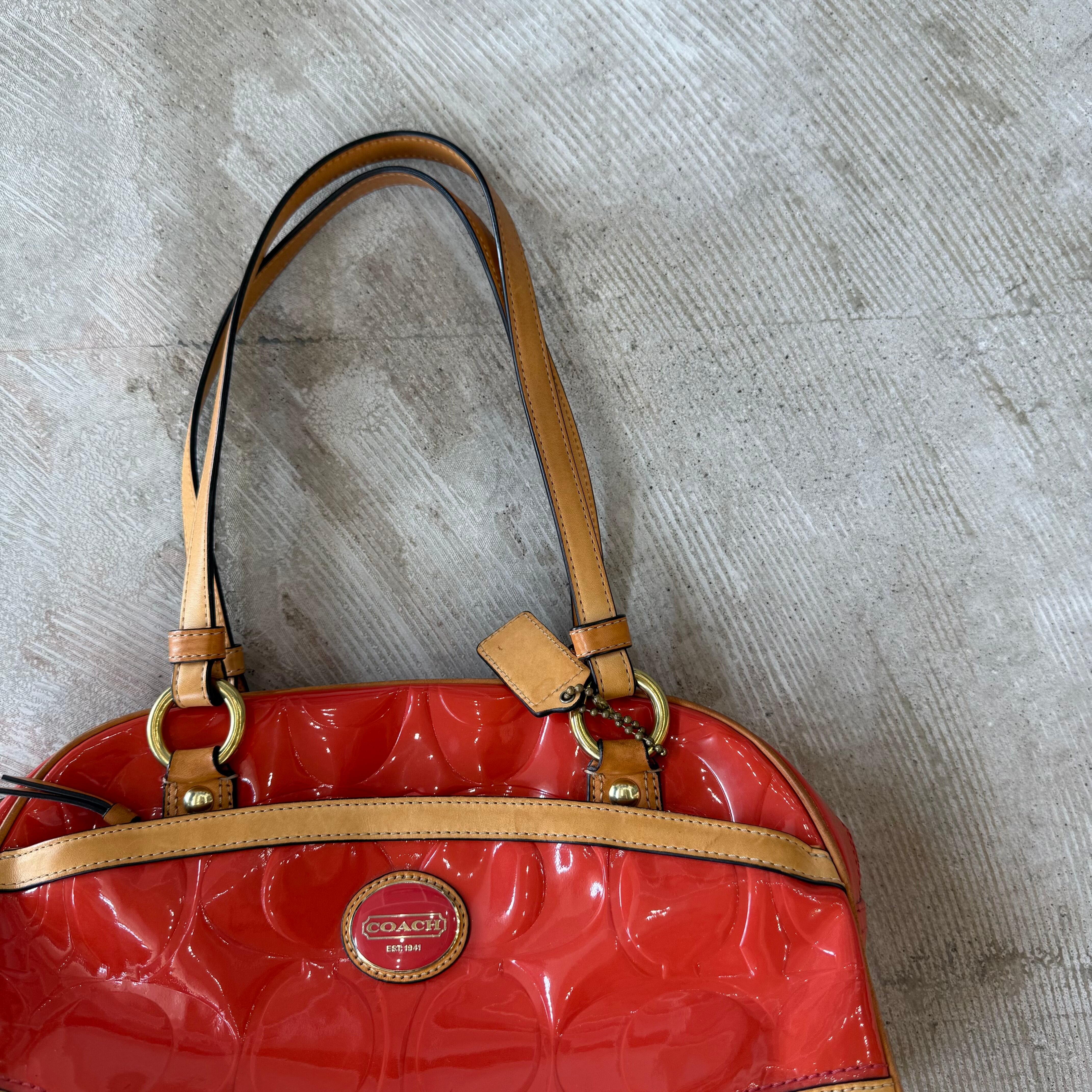 COACH orange enamel leather tote bag