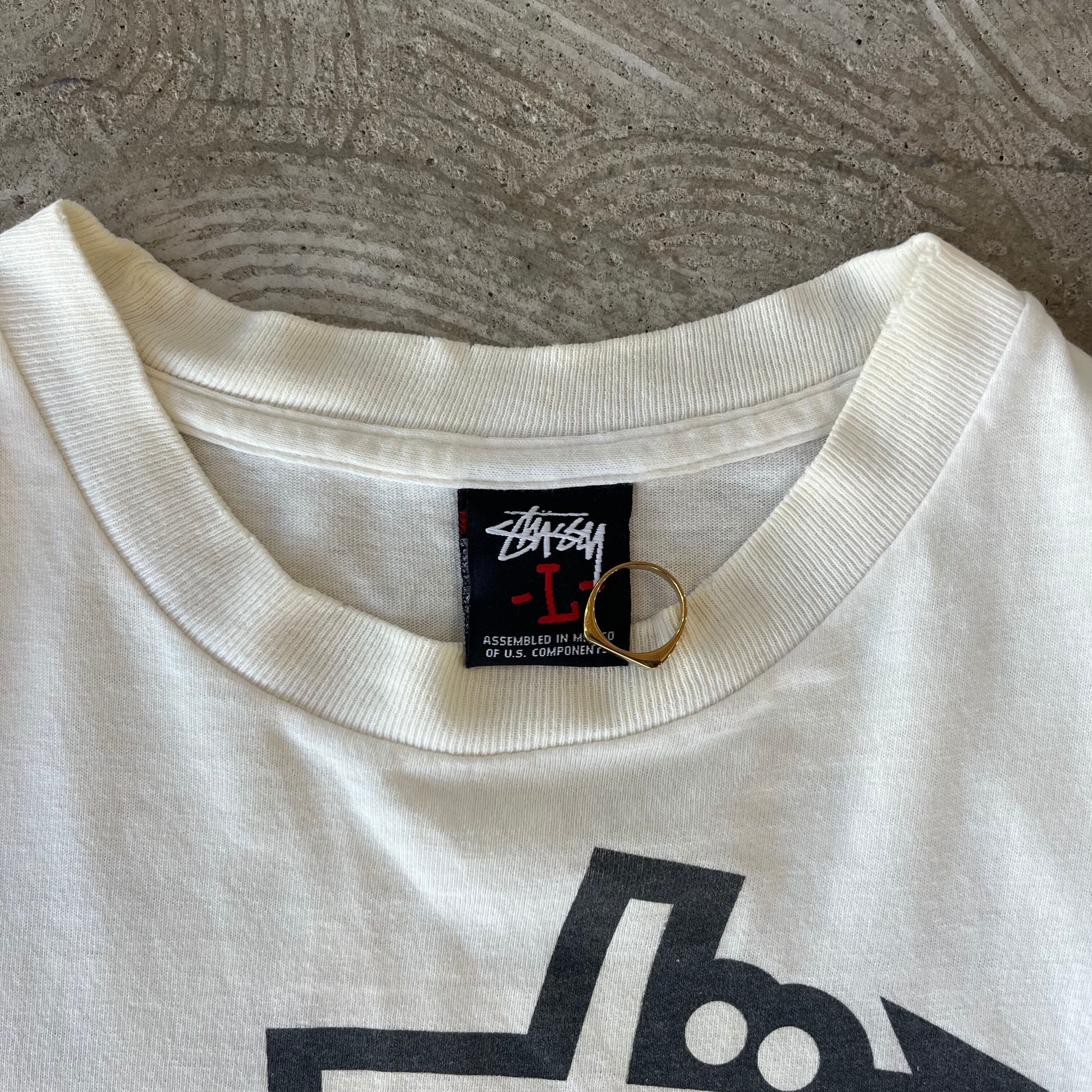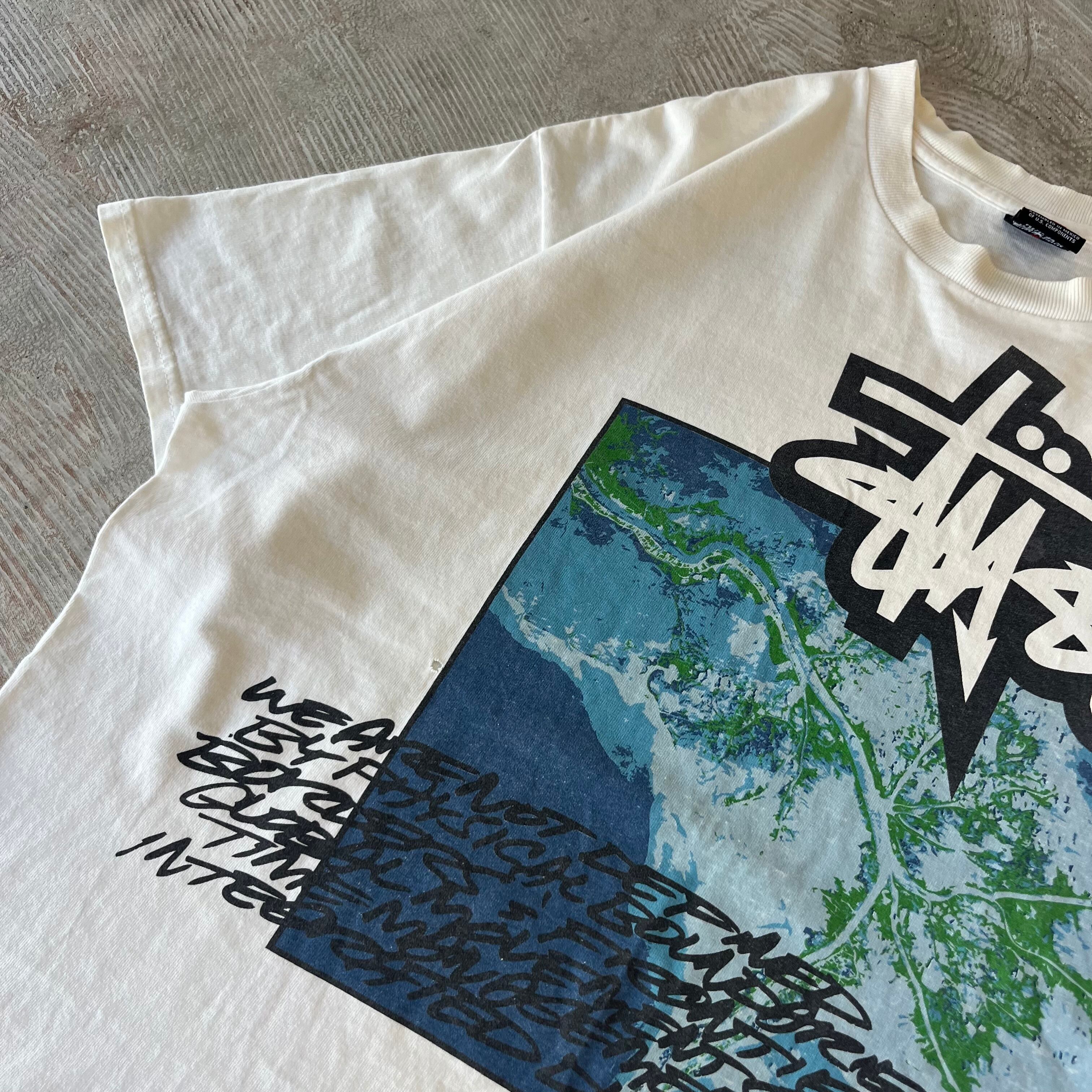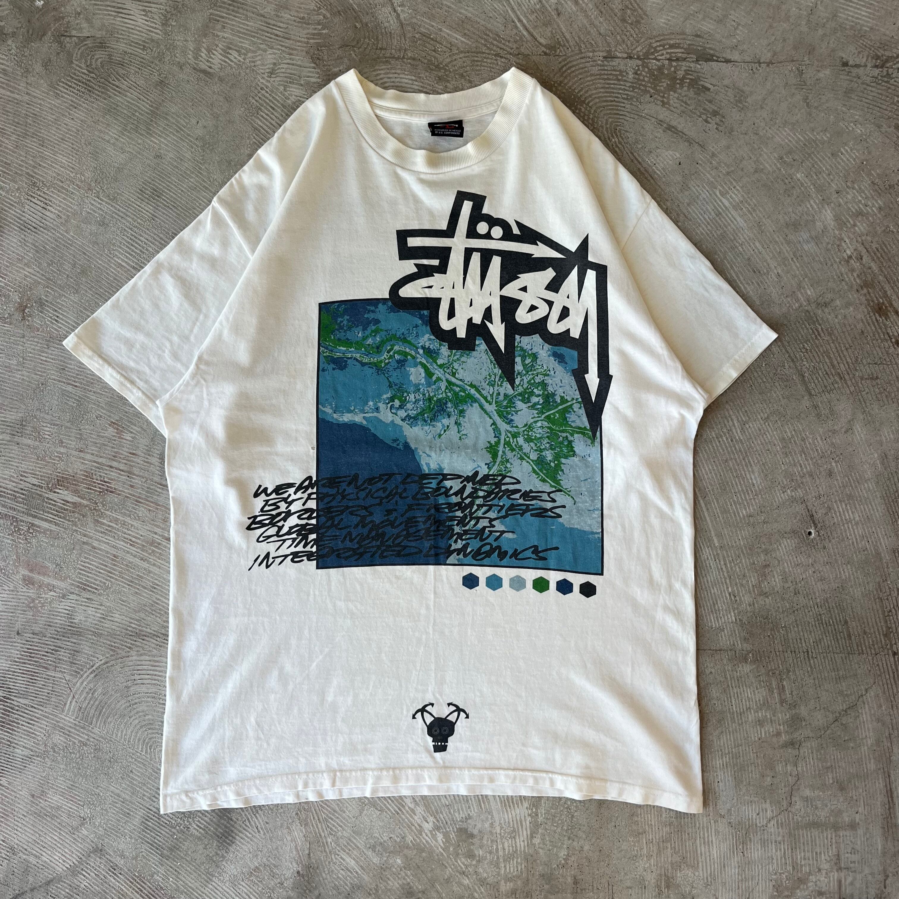 2008s/s FUTURA×STUSSY topographic_map graphic white t-shirt MADE IN USA