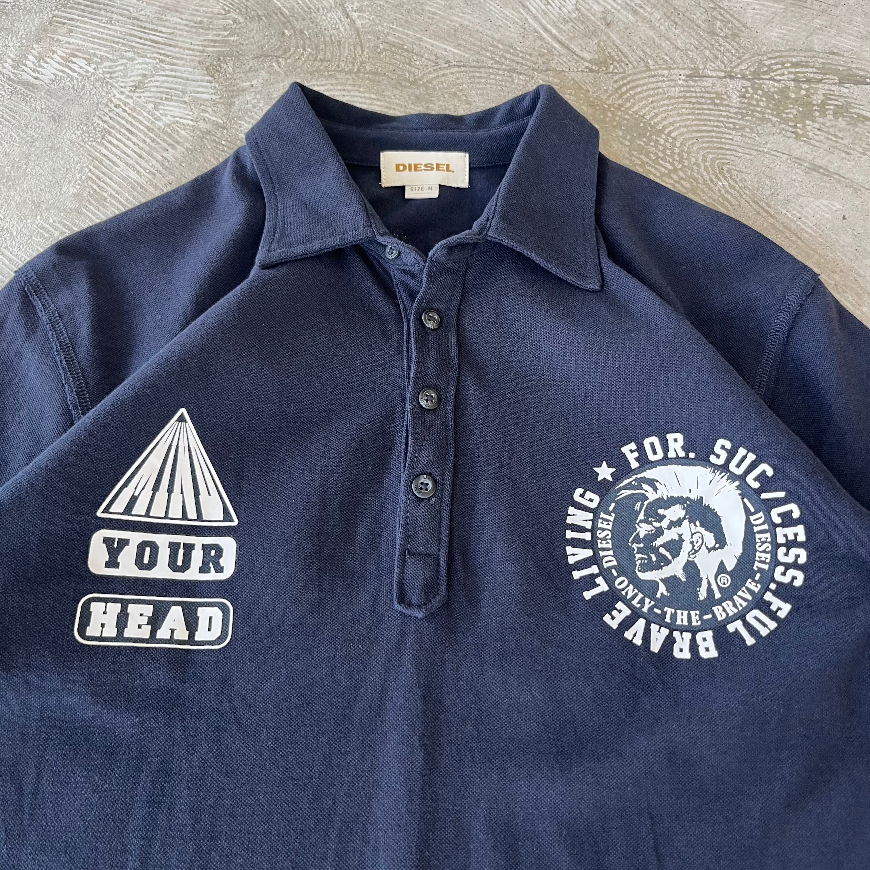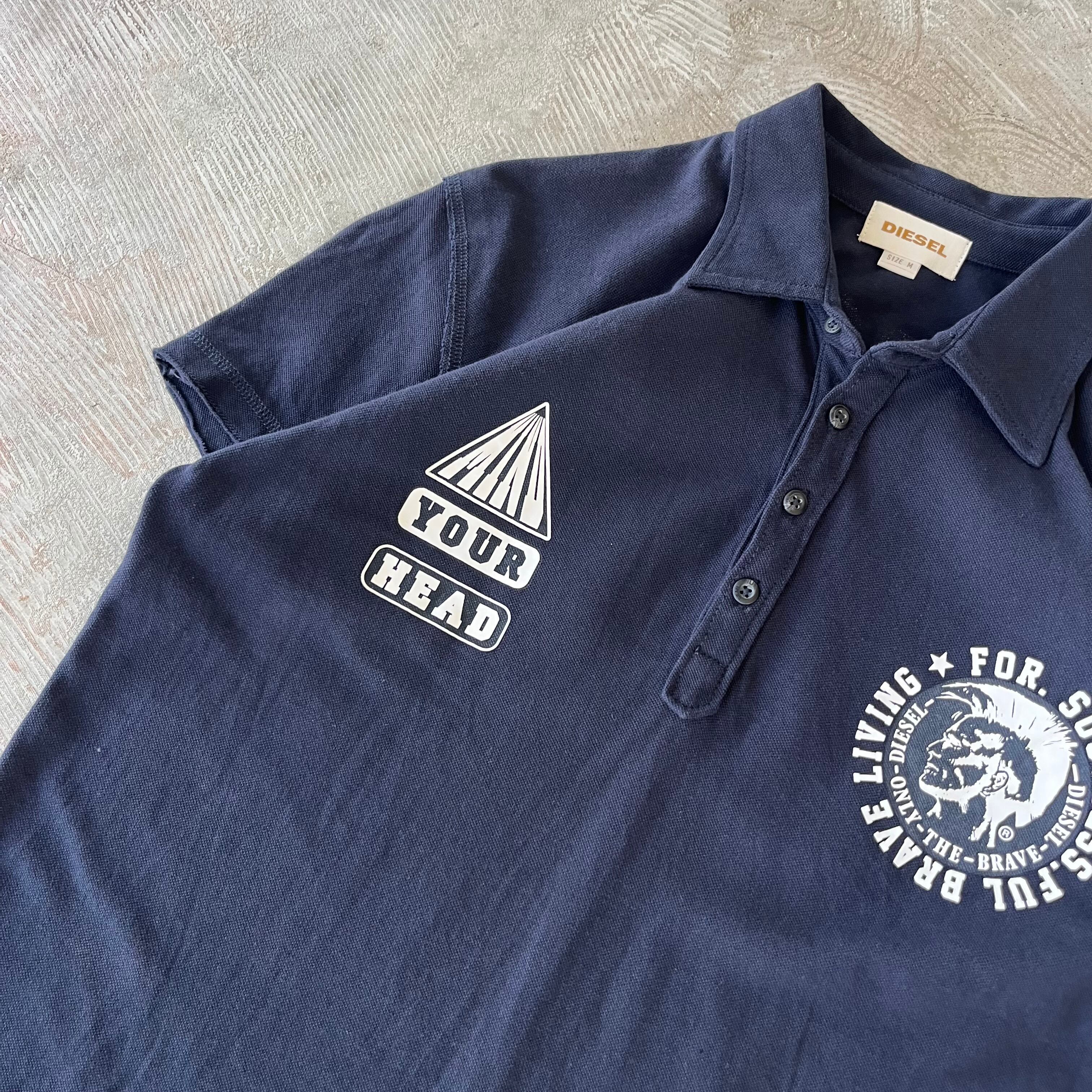 DIESEL double print and back big print navy polo shirt