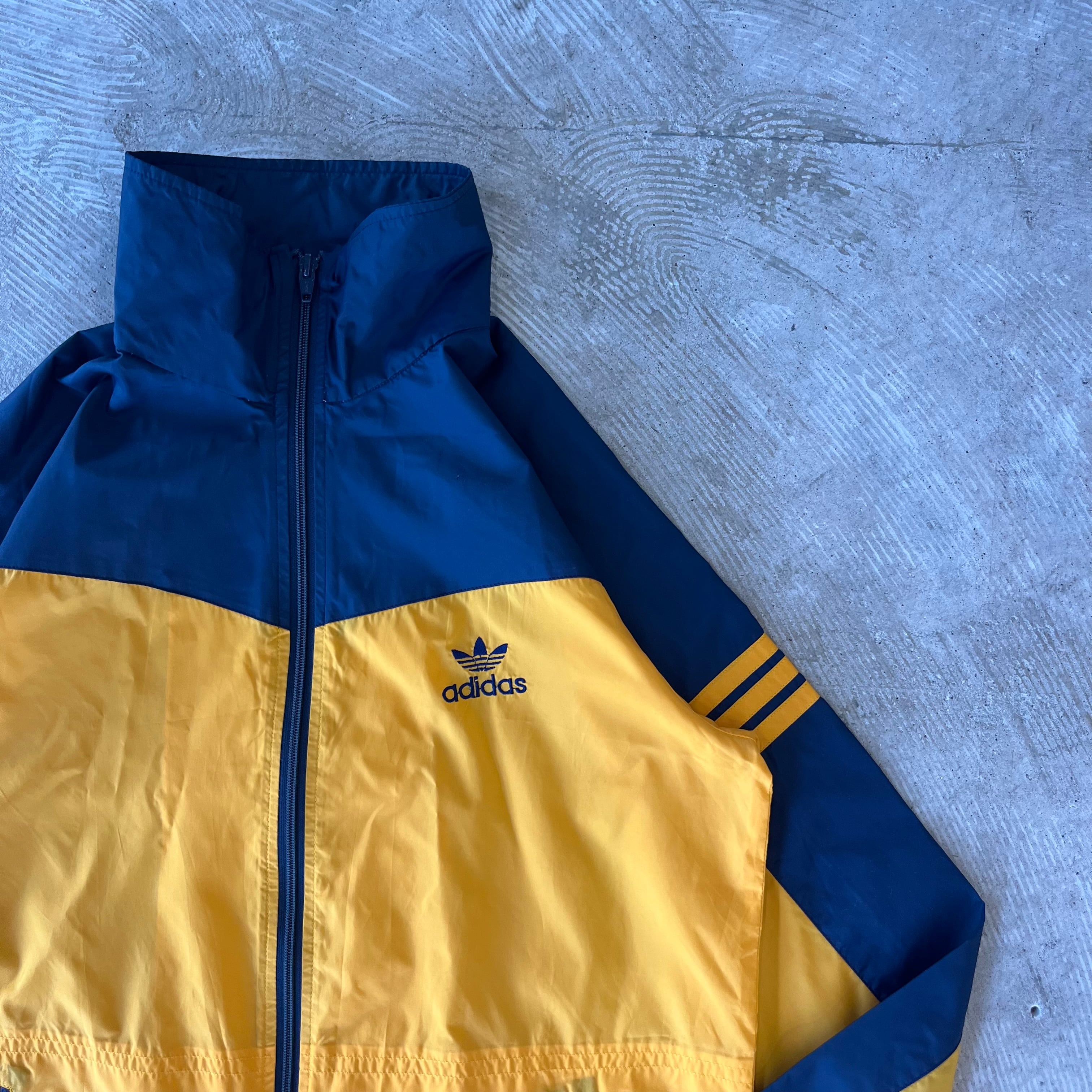 80’s~90’s adidas yellow,navy high neck nylon jacket made by Descente