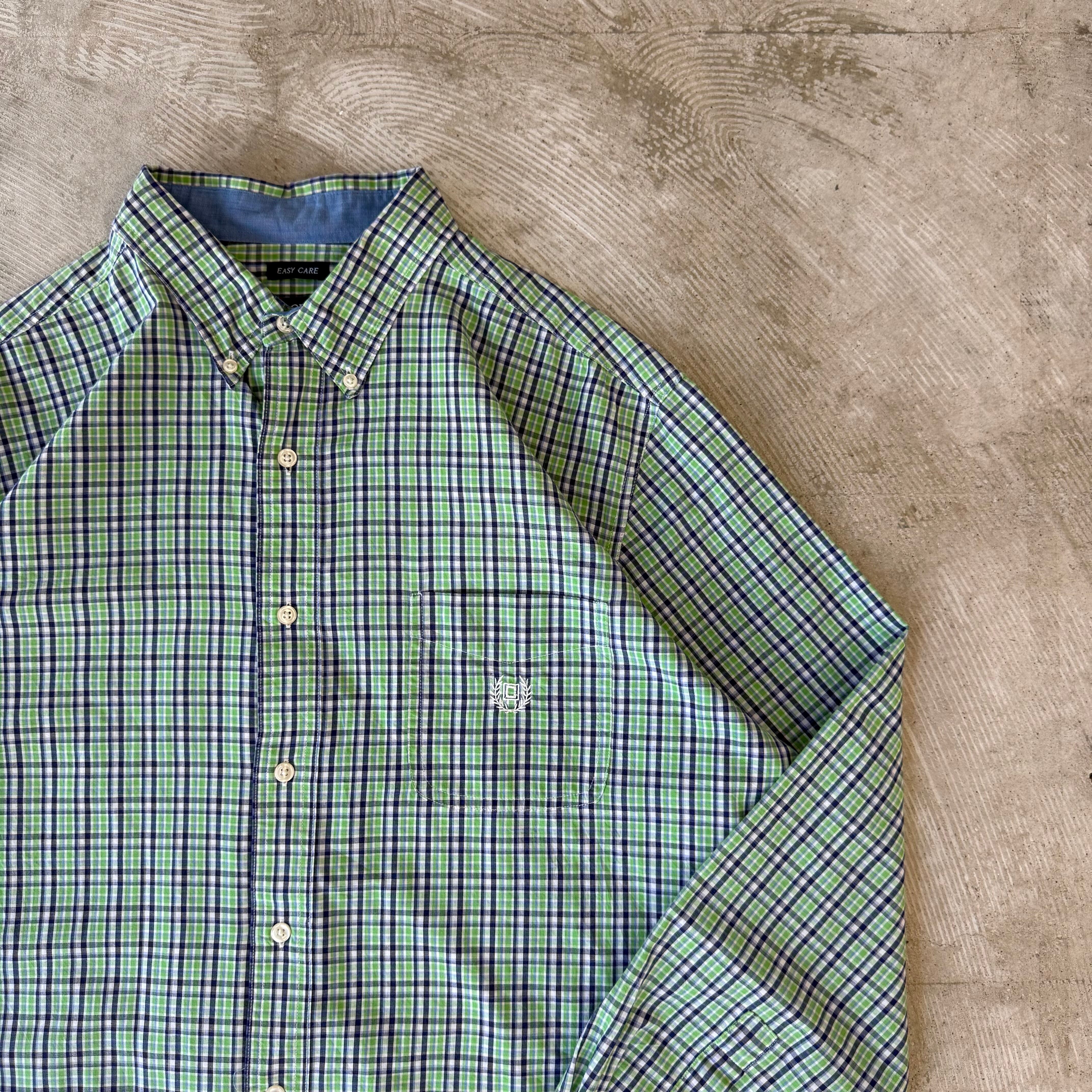 CHAPS EASY CARE one point lightgreen,navy,white check long sleeve shirt